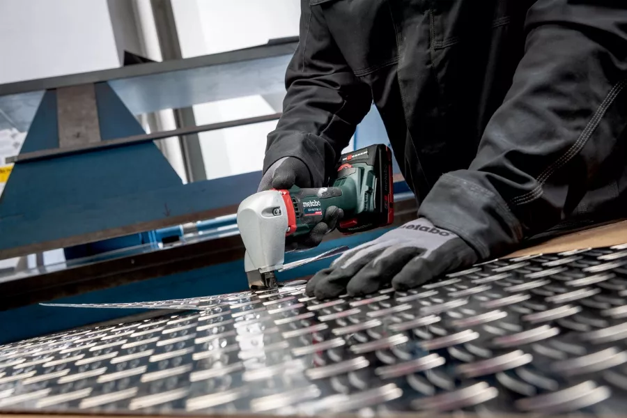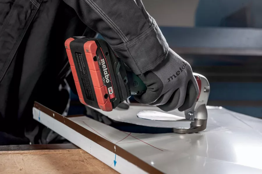 - Cisaille à tôle sans fil très maniable et pratique pour découper des tôles sur place sans ébarbures
