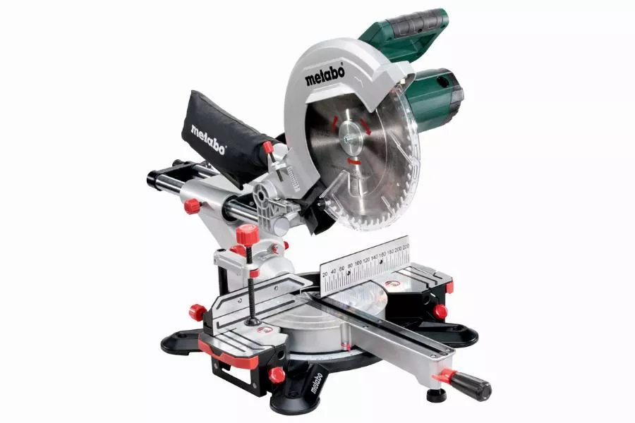 Puissance de coupe élevée grâce au moteur universel extrêmement puissant et à la grande lame de scieFonction radiale pour les pièces largesPoids plume compact, convient également pour le transport à une mainStructure robuste en fonte d’aluminium moulée sous pression pour les exigences les plus élevéesTransport facile grâce aux poignées ergonomiques et au blocage de la tête de scieAspiration efficace des sciures par l’entonnoir collecteur de sciures intégréDémarrage progressif : empêche le fusible de sauter à la mise en route de la machineRéglage rapide et précis des angles les plus courants grâce aux cransLaser pour l’indication précise de la ligne de coupe (avec alimentation secteur, sans pile)Rallonges de table latérales escamotables en continu, amovibles pour poser de longs panneaux, des plinthes, etc.Lampe de travail à LED puissante pour éclairer la zone de coupe (avec alimentation secteur, sans pile)Butées hautes et ajustables sur les côtés pour un sciage sûrPince de serrage pour la fixation sûre de la pièce par le haut ou l’avantButée de profondeur pour la réalisation facile de rainuresTête de scie inclinable à gauche avec réglage supplémentaire de l’angle pour les contredépouillesToutes les échelles et les éléments de commandes sont lisibles et s’utilisent de manière intuitive quelle que soit la position de travailChangement facile de la lame grâce au blocage de la broche ; pas besoin de démonter le capot de protectionDimensions 850 x 515 x 615 mmSurface d’appui 340 x 775 mmLargeur de coupe 90°/45° 305 / 205 mmProfondeur de coupe max. 90°/45° 105 / 67 mmCapacité de coupe 90°/90° 305 x 105 mmCapacité de coupe 45°/45° 205 x 67 mmRéglage du plateau rotatif à gauche/à droite 47 / 47 °Inclinaison de la lame à gauche/ à droite 47 / 2 °Lame de scie 305 x 30 mmPuissance absorbée nominale S1 100 % 1.600 WPuissance absorbée nominale S6 20 % 2.000 WVitesse de rotation à vide 3.700 /minVitesse de rotation en charge nominale 2.600 /minVitesse de coupe 60 m/sPoids 19,6 kgLongueur de câble 2 mÉquipement standardLame de scie carbure (56 dents), 2 rallonges latéralesde table intégrées, Butée de tronçonnage, Pince deserrage, Outil pour le changement de la lame, Enroulementde câble, Sac collecteur de sciures